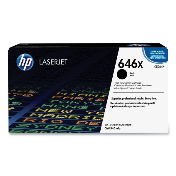 HP 646X, (CE264X) High-Yield Black Original LaserJet Toner Cartridge – Toner cartridge is designed for use with Hewlett-Packard Color LaserJet Enterprise CM4540 MFP, CM4540f MFP and CM4540fskm MFP. Cartridge yields approximately 17,000 pages.