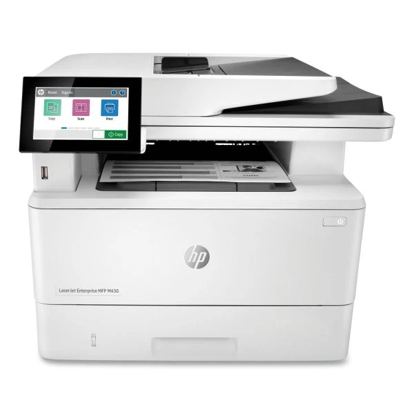HP LaserJet Enterprise MFP M430f, Copy/Fax/Print/Scan – Easily enable workflows across your fleet with a consistent user experience and intuitive, tablet-like icons. Give workgroups what they need to succeed with hundreds of HP and third-party solutions and card reader support. This printer uses dynamic security, which may be updated periodically by firmware updates. The printer is intended to be used solely with cartridges using an original HP chip. Cartridges using a non-HP chip may not function or may cease to function.
