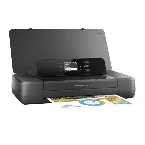 HP OfficeJet 200 Wireless Mobile Printer – Make the world your office with powerful portable printing—no network necessary. This quick, quiet printer delivers more pages per cartridge and has a long-lasting battery life. Set the pace for success wherever you go. Keep moving through the day with fast print speeds. Power through the workday. Charge from home, in your car or office, and more.