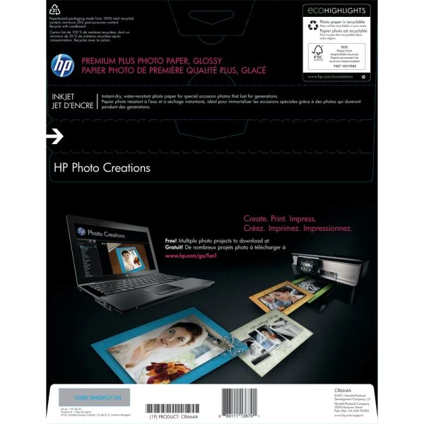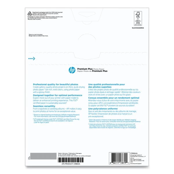 HP Premium Plus Photo Paper, 11.5 mil, 8.5 x 11, Glossy White, 50/Pack – Everyday-use paper features a crisp, neutral background to bring out the best in graphics, charts and text. Delivering outstanding value for creating in-house materials, this reliable business paper is perfect for nearly any printing or copying task: business documents, brochures, flyers, and more. ColorLok technology helps ink dry faster, leaving precise, smudge-free prints. Acid-free construction prevents the bright white sheets from yellowing and fading over time.